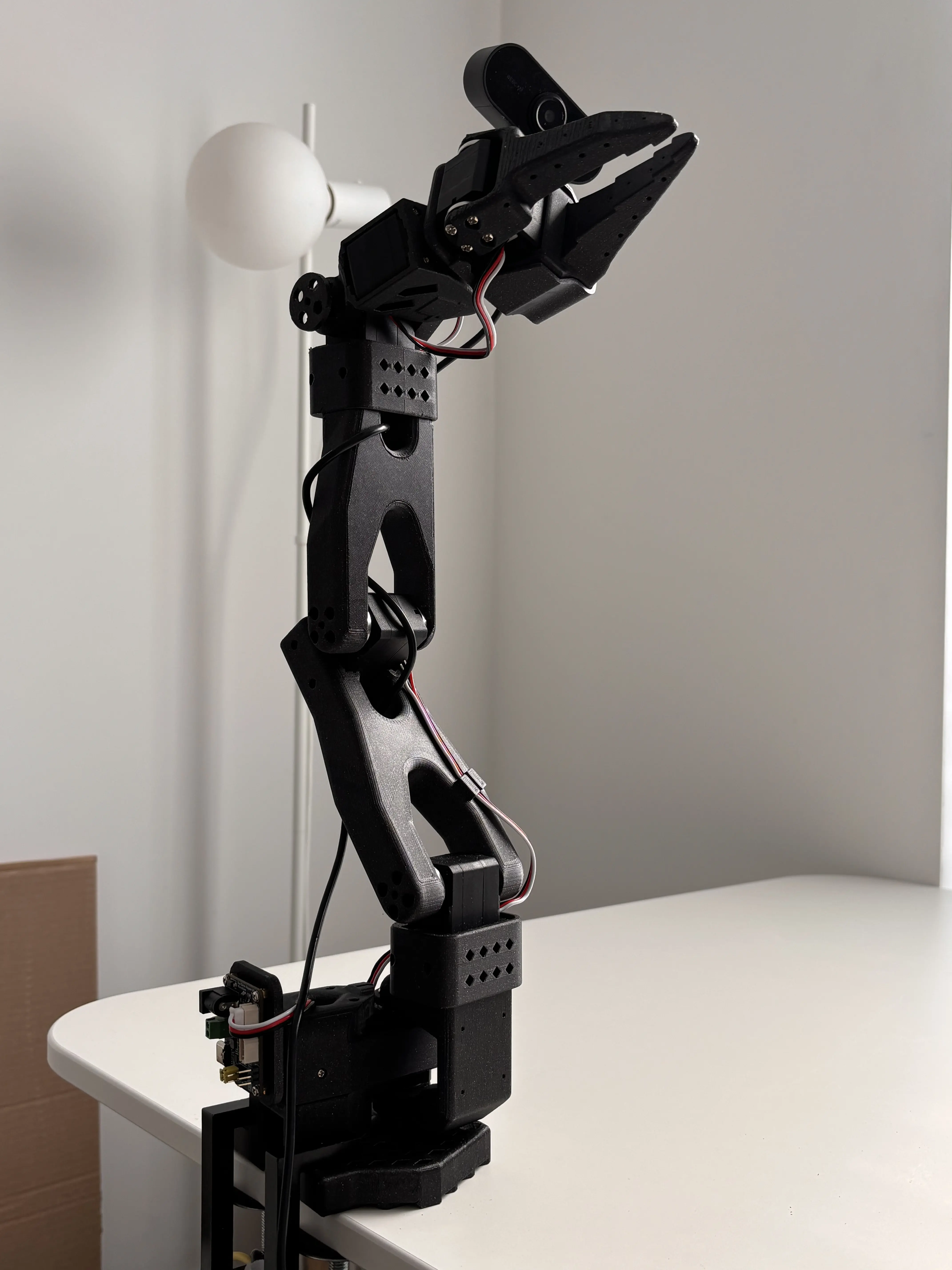Before 3D printing all the parts, I also searched for a camera mount. There were none available in the SO-100 repository, so I designed my own. You can find it here.